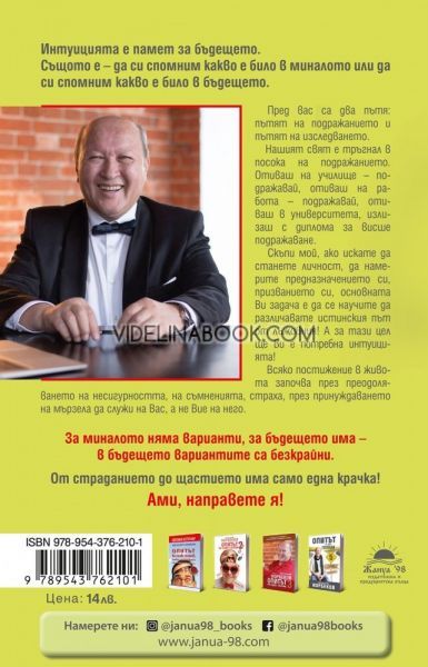 Ако искате да станете личност, да намерите предназначението си, призванието си, основната ви задача е да се научите да различавате истинския път от лъжовния! А за тази цел ще ви е потребна интуицията! Всяко постижение в живота започва през преодоляването на несигурността, на съмненията, на страха, през принуждаването на мързела да служи на вас, а не вие на него. За миналото няма варианти, за бъдещето има – в бъдещето варианти са безкрайни. От страданието до щастието има само една крачка. Ами, направете я!
