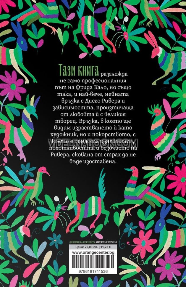 Тази книга разглежда не само професионалния път на Фрида Кало, но също така, и най-вече, нейната връзка с Диего Ривера и зависимостта, произтичаща от любовта ѝ с великия творец.