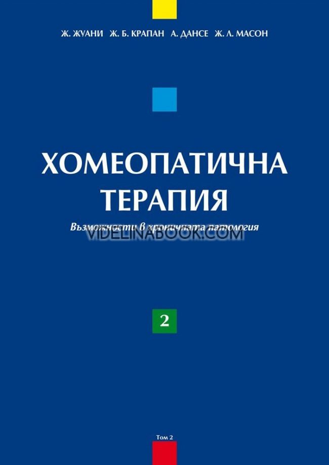 Хомеопатична терапия: Възможности в хроничната патология, том 2 от Ж. Жуани, Ж. Б. Крапан, А. Дансе, Ж. Л. Масон е задълбочено продължение на първия том, посветено на хроничните заболявания и тяхното лечение чрез хомеопатичен подход. Книгата предлага структурирана методология, базирана на клинична обективност и богат практически опит, като съчетава теоретични основи с реални случаи от медицинската практика.
