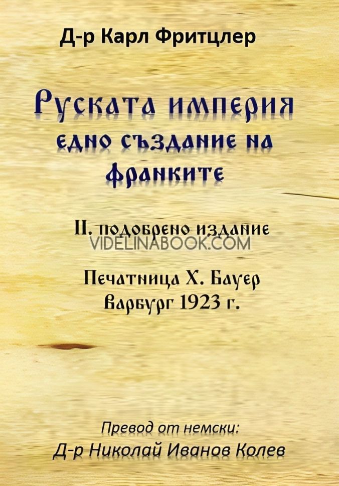 Книгата „Руската империя. Едно създание на франките“ на д-р Карл Фритцлер представлява задълбочено историческо изследване, което поставя под въпрос официалната версия за произхода на Русия. Авторът проследява корените на руската държавност, като изследва връзките между франките, варягите и славянските племена, и разкрива непознати паралели между европейската и руската история.