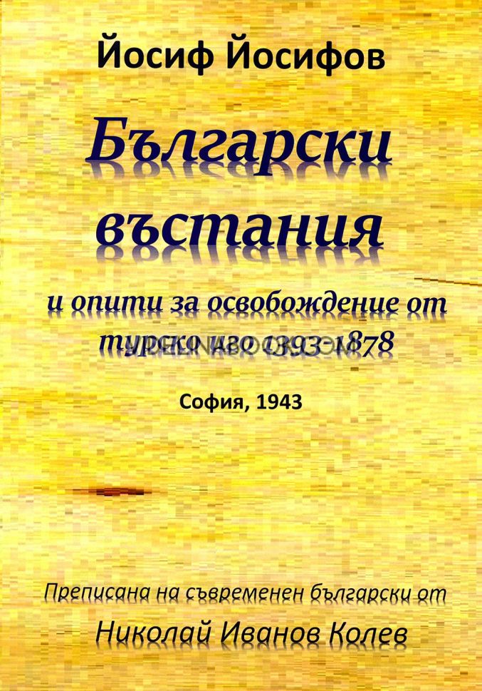Български въстания: и опити за освобождение от турско иго 1393 - 1878, Йосиф Йосифов разглежда подробно дългогодишната и героична борба на българския народ срещу османското владичество. Книгата представя историческите факти за всяко известно и непознато въстание, както и за многобройните опити за освобождение, които са водени в продължение на почти пет века робство. Авторът подчертава, че традиционните възгледи за "400 години сън" на българите са невярни, като акцентира върху жилавостта, упоритостта и героизма на народа, който не е изгубвал националното си съзнание.