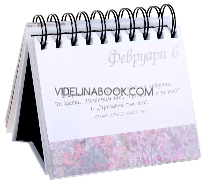 Календарът е в комплект с картонен футляр, който го предпазва. На първа страница на книжката можете да напишете собственоръчно посвещение, за да бъде подаръкът още по-личен и посланието от сърце.