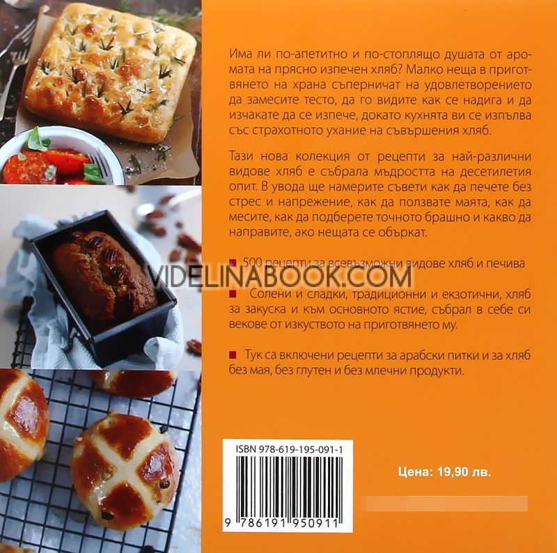 500 рецепти за всевъзможни видове хляб и печива – солени и сладки, традиционни и екзотични, за закуска и към основното ястие, събрал в себе си векове от изкуството на приготвянето му. Тук са включени рецепти за арабски питки и за хляб без мая, без глутен и без млечни продукти.