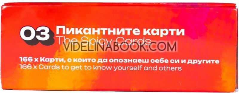 Пикантната кутия съдържа 165 карти, разделени в 5 категории: