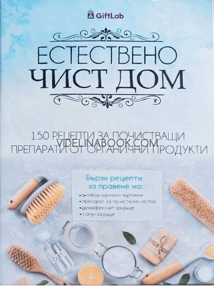 „Естествено чист дом: 150 рецепти за почистващи препарати от органични продукти“ е практично и вдъхновяващо ръководство за всеки, който желае да поддържа дома си с натурални средства, без вредни химикали и с грижа към здравето и околната среда. Книгата предлага лесни, достъпни и ефективни решения, които превръщат почистването в по-безопасен и осъзнат процес.