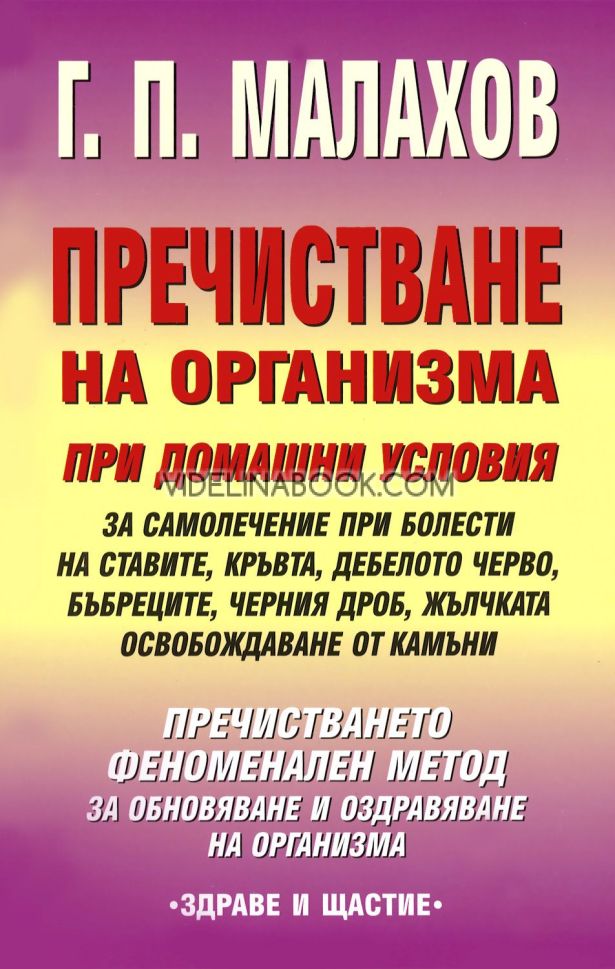 „Пречистване на организма при домашни условия“ е практичен наръчник за самолечение и подобряване на здравето чрез прочистване на организма. Г. П. Малахов предлага феноменални методи за обновяване, оздравяване и предотвратяване на хронични заболявания, като акцентира върху самостоятелни практики, правилно хранене и достъпни домашни методики. Книгата е ценна както за хора с хронични заболявания, така и за здрави, които искат да поддържат тялото си в оптимално състояние.