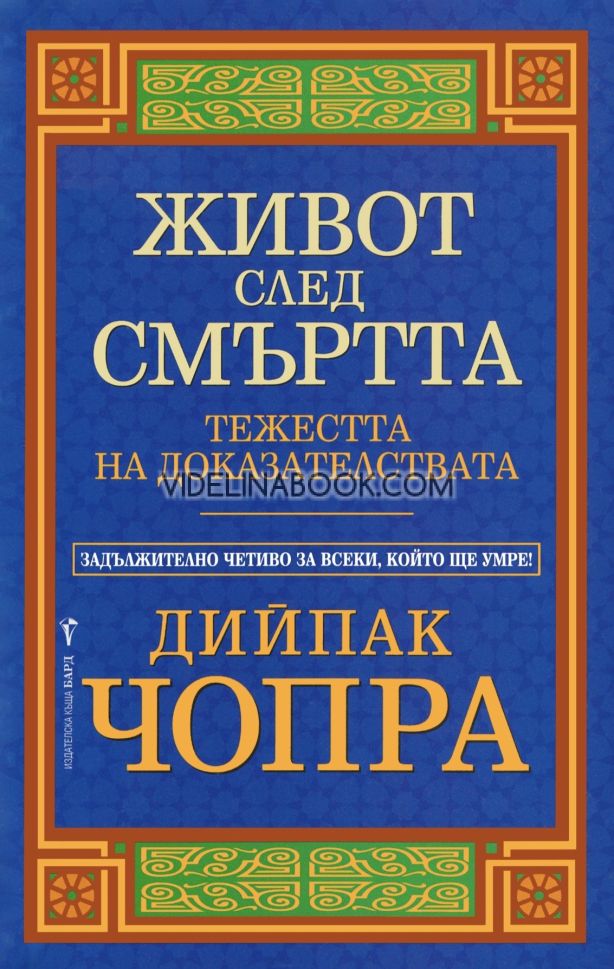 Книгата "Живот след смъртта: Тежестта на доказателствата" предлага уникален поглед върху смъртта и живота, като показва, че животът след смъртта не е отделен от настоящия живот. Дийпак Чопра съчетава научни открития и традиции на мъдростта, за да представи цялостен модел на съзнанието, което продължава след смъртта.