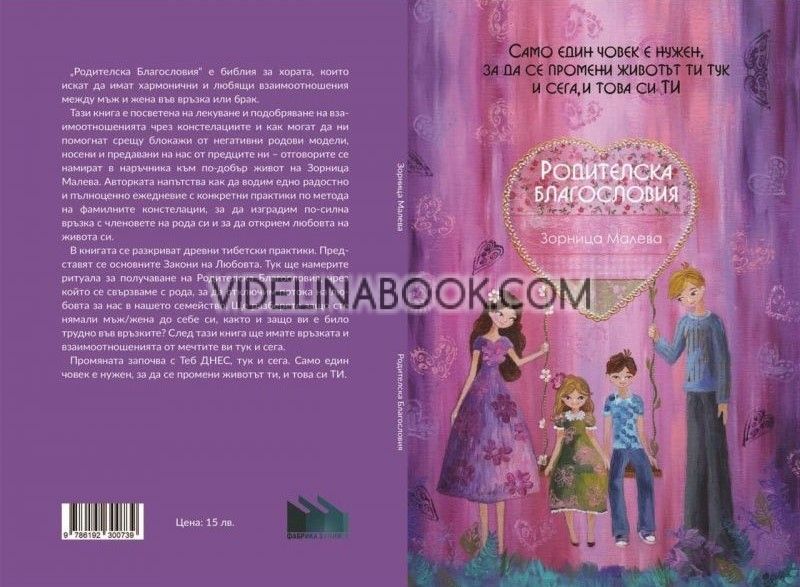 „Родителска Благословия: Само един човек е нужен, за да се промени животът ти, и това си ТИ“ на Зорница Малева е вдъхновяващ духовен наръчник, който води читателя през пътя на самоизцеление, осъзнаване и вътрешна хармония чрез метода на фамилните констелации. Книгата изследва влиянието на родовите модели върху нашите взаимоотношения, любовен живот и лична съдба. Авторката показва как освобождаването от несъзнавани родови блокажи може да ни помогне да изградим по-дълбока връзка със себе си, с предците си и с хората, които обичаме. Това е книга за смелите души, готови да се изправят срещу своето минало, да приемат силата на рода си и да възстановят потока на любовта и благоденствието в живота си.